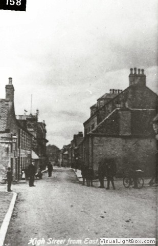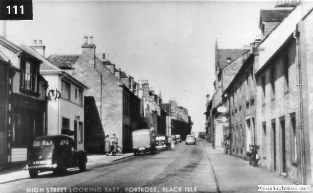 Fortrose High St to west. Bert Miller's van (butcher) visible. Union Tavern on right