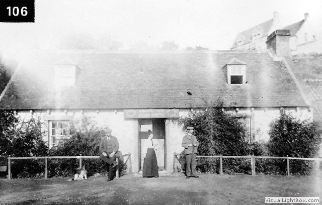 Rosemarkie Bridge St 1st house. Granny More at dooor c1930. Was a TV/radio shop in the 1960s/70s