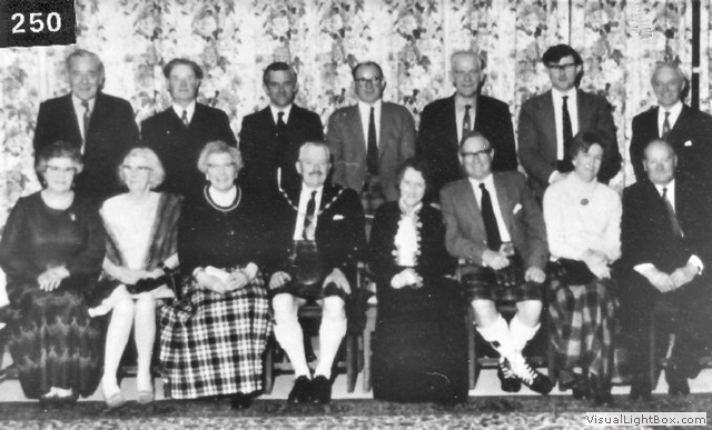 Fortrose Town Council 1975. Mr Lackie, Dodd Young, A Matheson, Ian Cameron, Jonathan Owens, Murdo MacPhail, Archie Stirling. Miss Jean Hay, Mrs MacDonald, Miss Agnes Cheyne, Provost Harry Rodgers, Mrs Crawford, Mr Currie, Mrs Hamilton, Mr J MacKay. The last council prior to regionalisation.