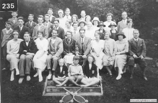 Rosemarkie Tennis Tourn 1924. Local players and Marine Hotel visitors. Back row - Bob Sinclair. Middle row: Ella Horne. Front row: Ray Hossack, Wilby Milne, Dolly Sinclair, Ella Horne, Michael Horne, Helen Scott, Catherine MacKinnon